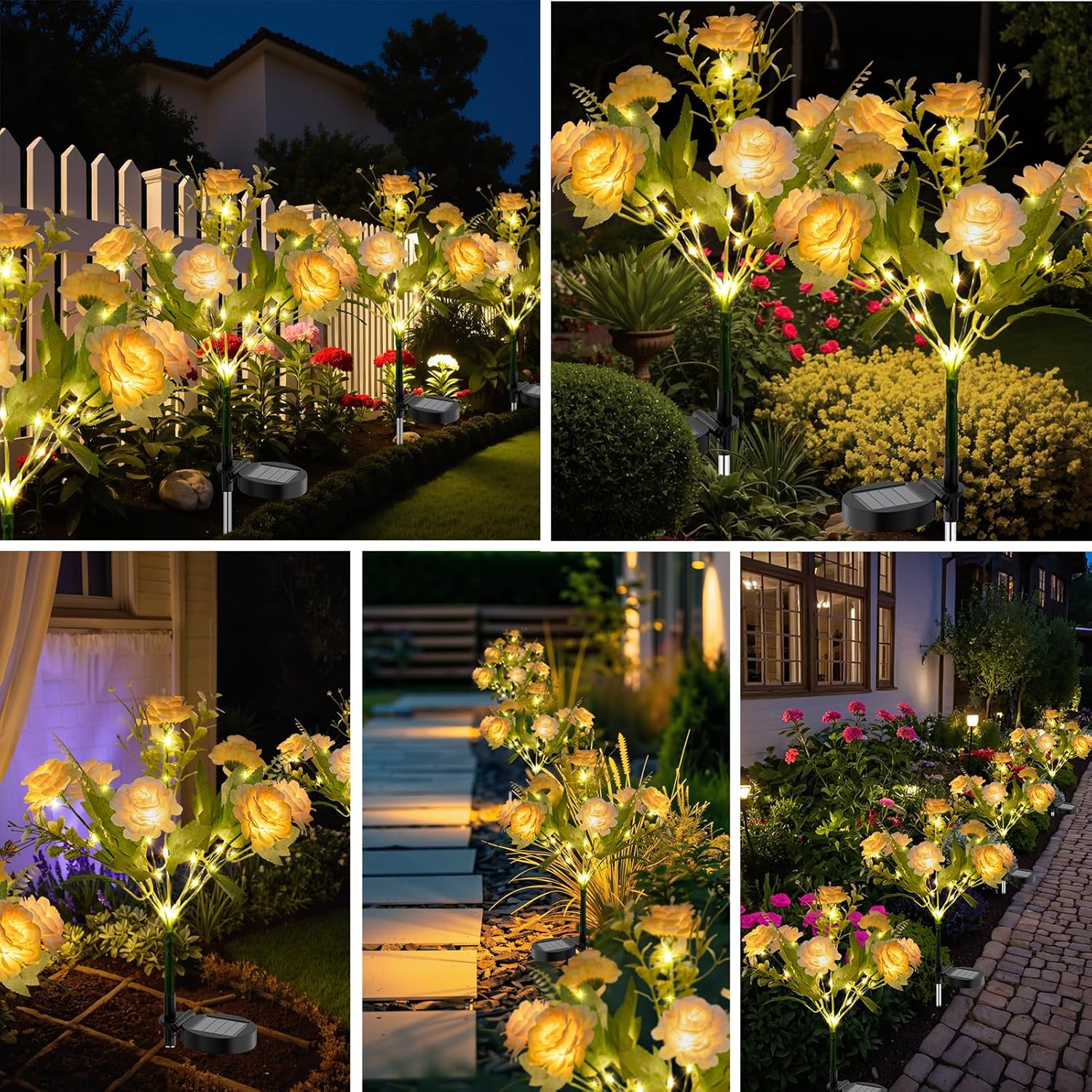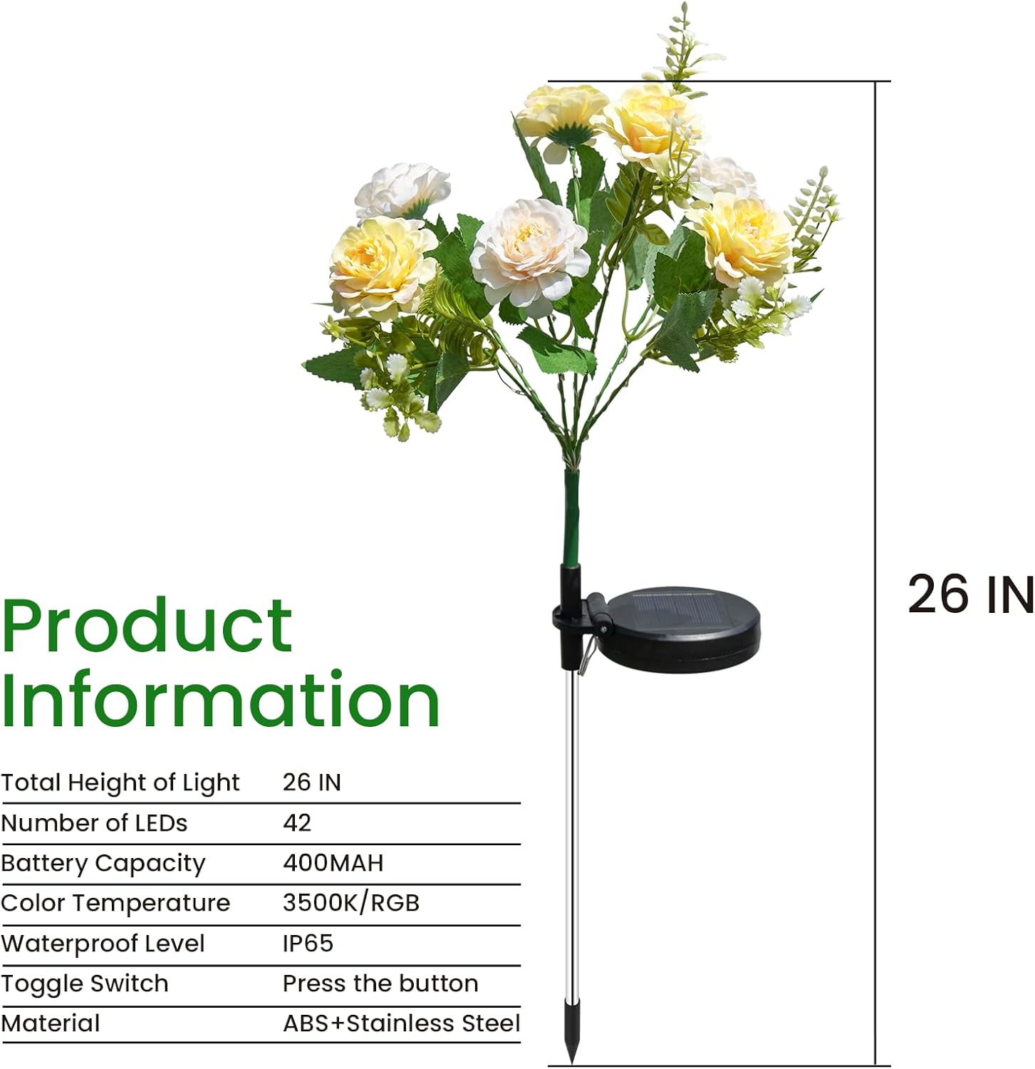 [42″ Tall & 42 LEDs Brilliant Radiance] Elevate your outdoor decor with our uniquely designed 42-inch tall solar garden lights. Unlike standard stakes, each hibiscus flower is equipped with 42 upgraded high-intensity LED beads, emitting a romantic warm glow that makes your yard and landscape the centerpiece of the neighborhood at night.