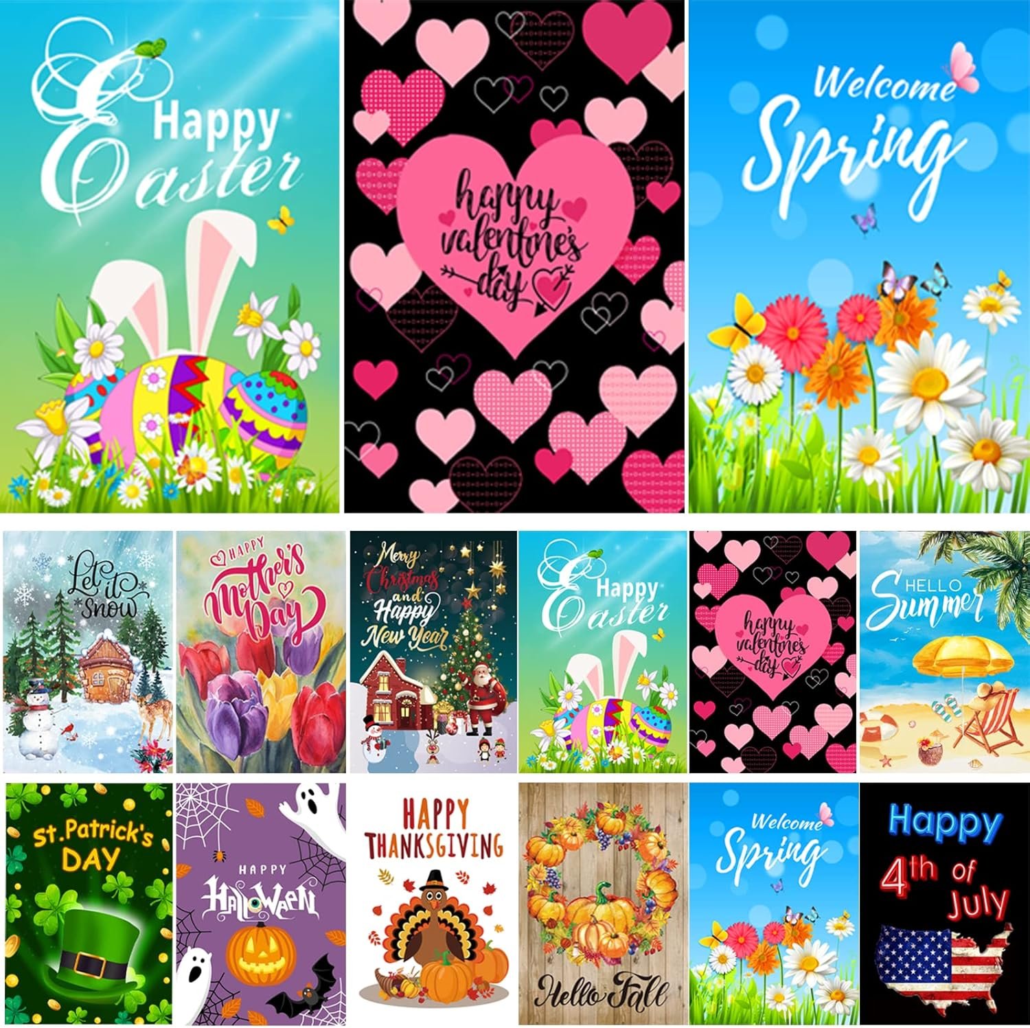 This 12-Pack Garden Flag Set help you better prepare for every major holiday or special occasions. Enjoy the happy times with your family, friends and neighbors!
