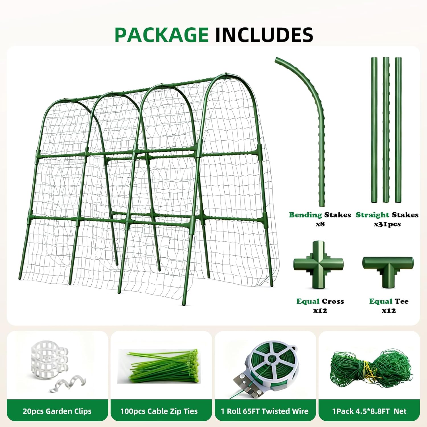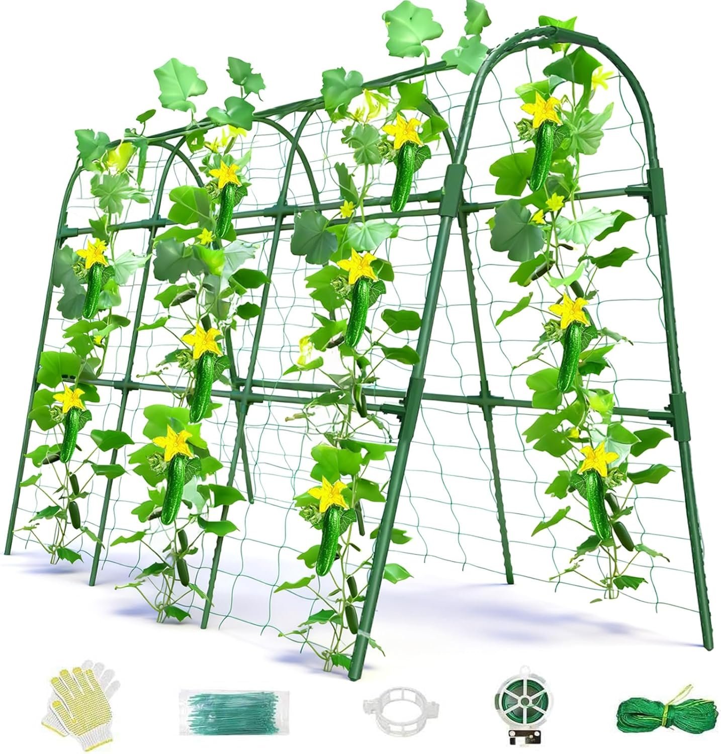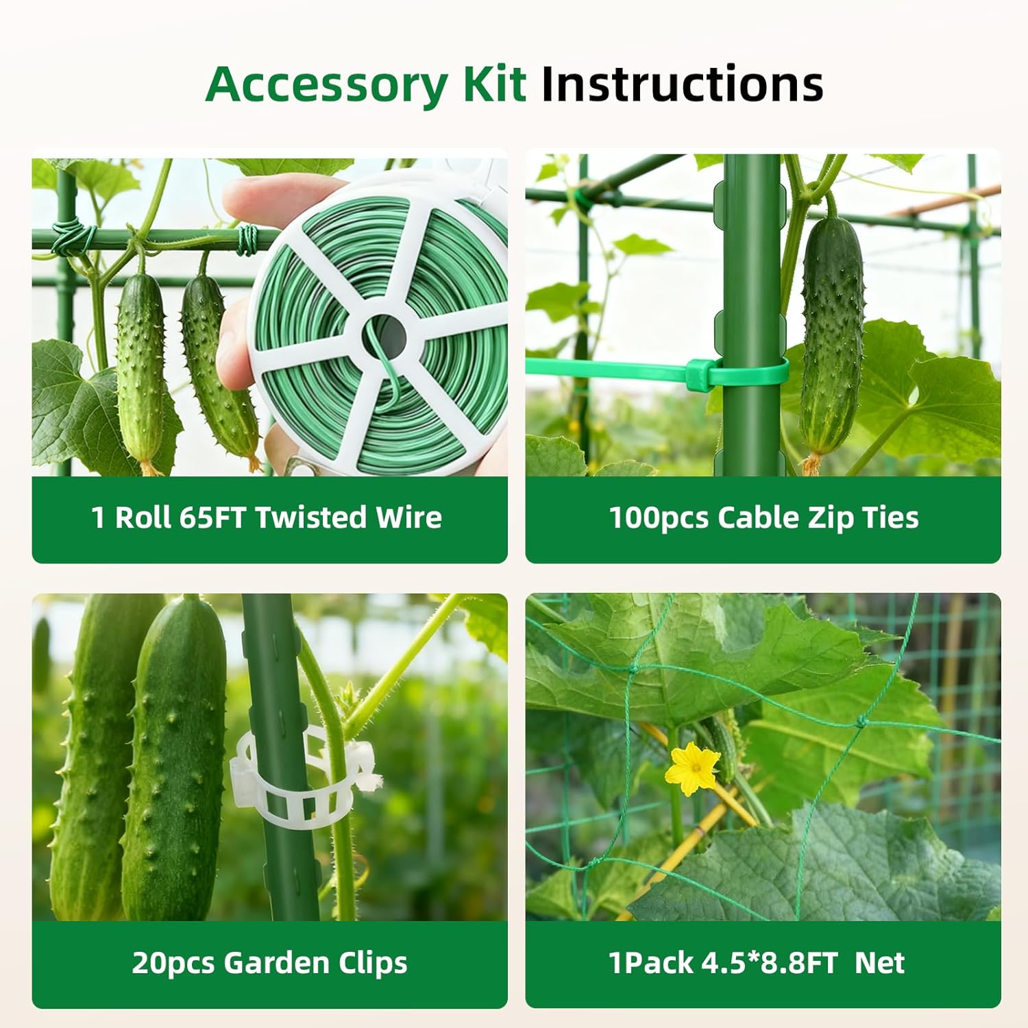 【Package Includes】Cucumber Trellis (47.2″ x 30″ x 47.2″L*W*H);Garden Clips (20 pieces);Leaf Ties (100 pieces);Twist Tie (1 piece);Trellis Netting (1 piece);Manual (1 piece).