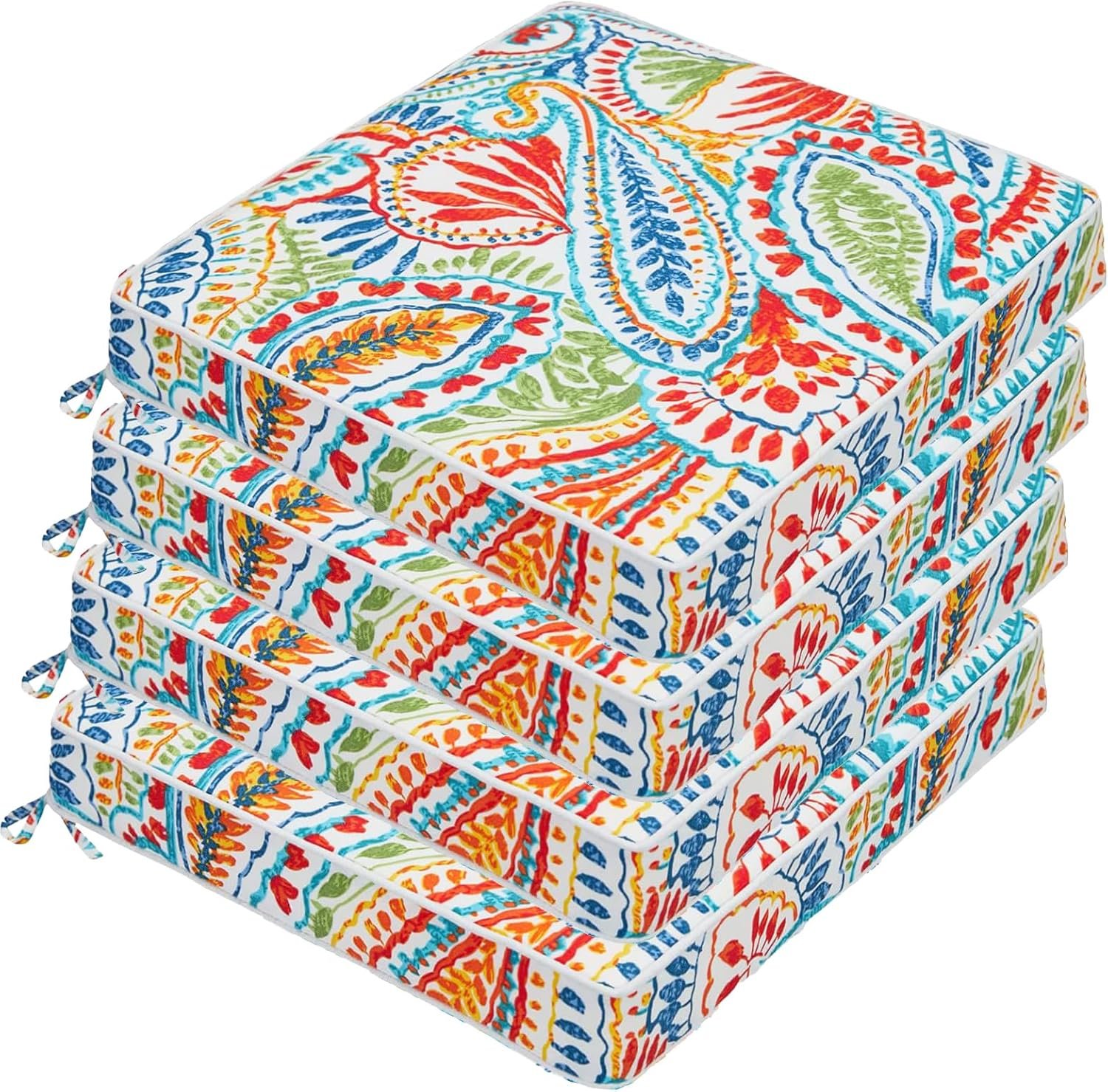 ✨【COMPLETE 4-PIECE PAISLEY SET】- Transform your entire patio with 4 elegant 19 x 19 x 3 inch chair cushions featuring sophisticated Paisley pattern. High-density foam core provides maximum comfort and resilience. Vacuum-compressed for freshness – simply allow time to expand for optimal comfort!
