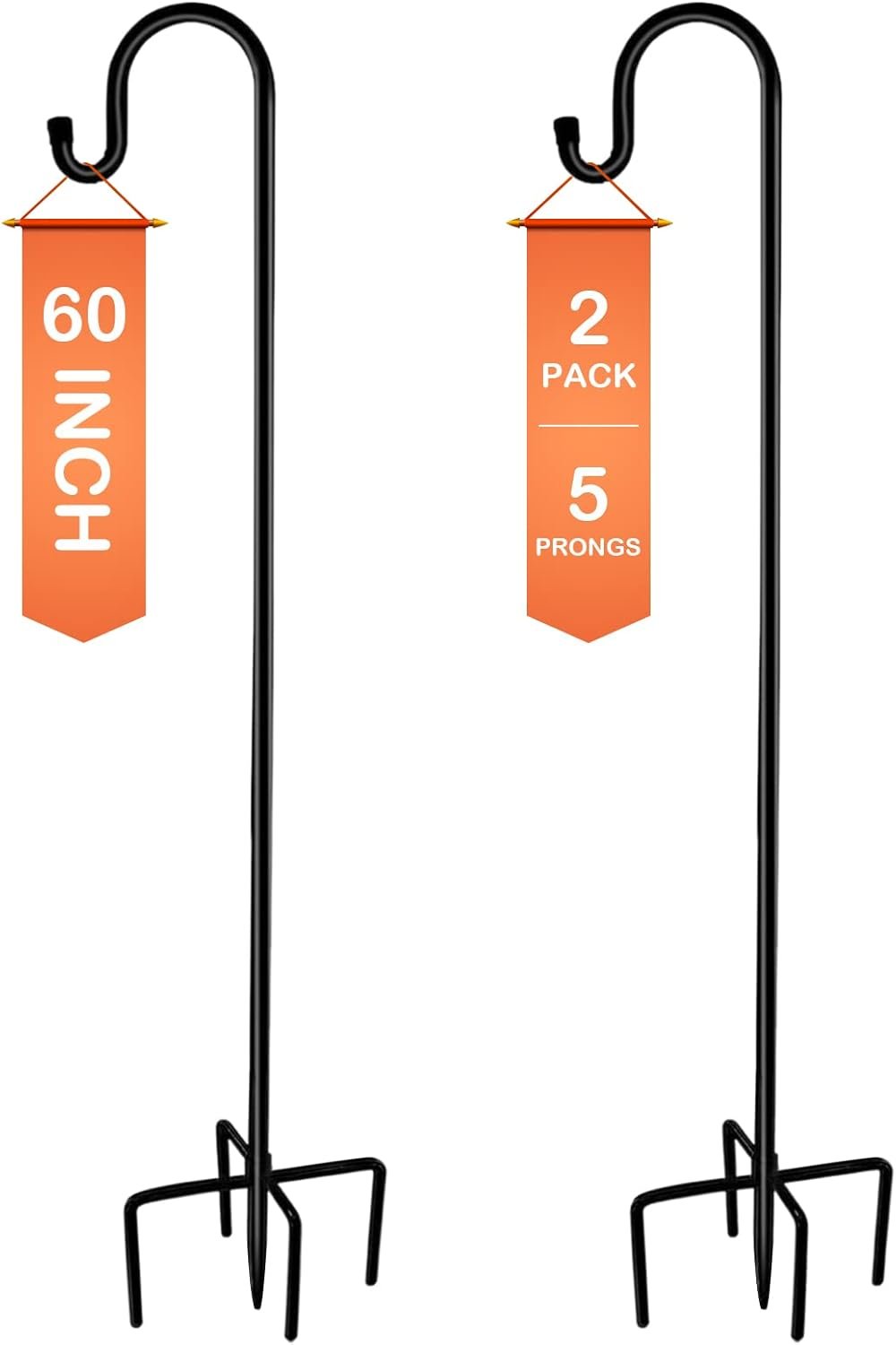 【Upgraded in Stability & 5 Base Prongs】Compared to other similar hooks in the market, our heavy duty shepherds hooks have upgraded with 4 extra long and double-forked base prongs to be total 5 prongs which makes it the strongest garden hook in the market and maintain a fixed, upright posture while remaining firmly planted in the ground without easily falling down.